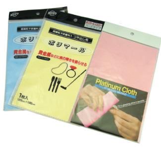 研磨剤とつや出しの為のワックスが布に含まれています。ブルーはソフトで金・銀向き、イエローはハードで銅・真鍮向き、ピンクはプラチナ用です。大きさ:195×125mm